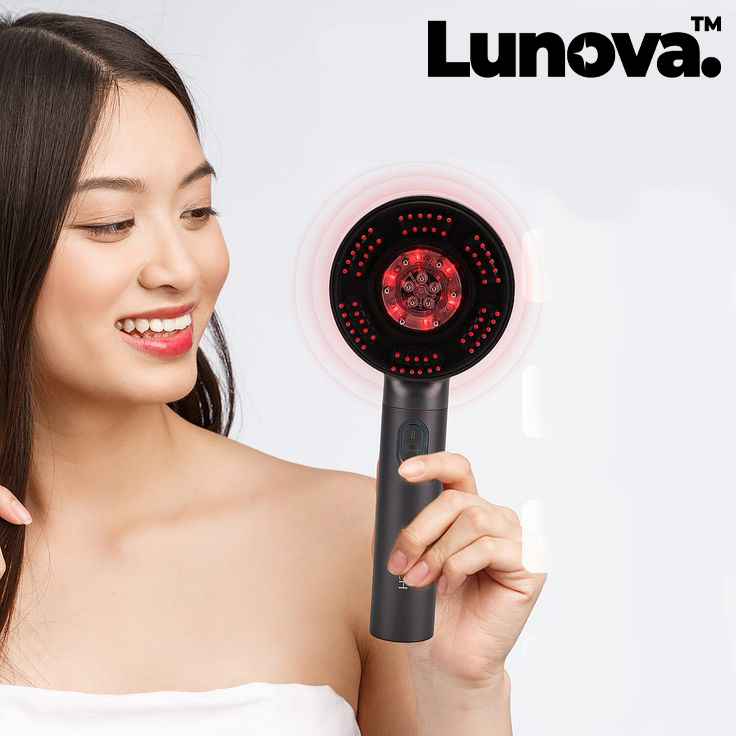 Da, Lunova™ Masažni Češalj koristi nježno crveno i plavo LED svjetlo te sigurne materijale koji su prikladni za sve tipove tjemena.